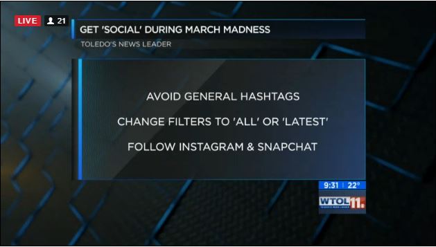 Posting a relevant, thought provoking comment or item during a live news or sports event can be a very successful brand strategy. Does an individual or brand’s idea or image add value to the event? Twitter, in their top examples of Live Tweets, show conspiracy theories, adult content and app sales. What do these non-relevant Tweets have in common? The omnipresent #MarchMadness hashtag. So how do you improve your social media experience to match your awesome steamed view of the tournament?